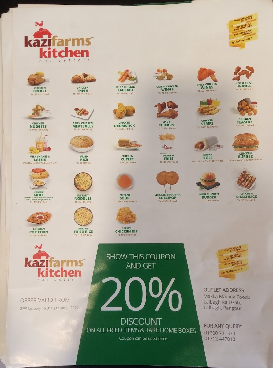 If you find yourself in Rangpur, one destination that truly deserves your attention is Kazi Farms Kitchen Rangpur, nestled at Lalbag Rail Gate on Lalbag Road. This charming café seamlessly combines comfort and taste, making it a haven for food lovers.